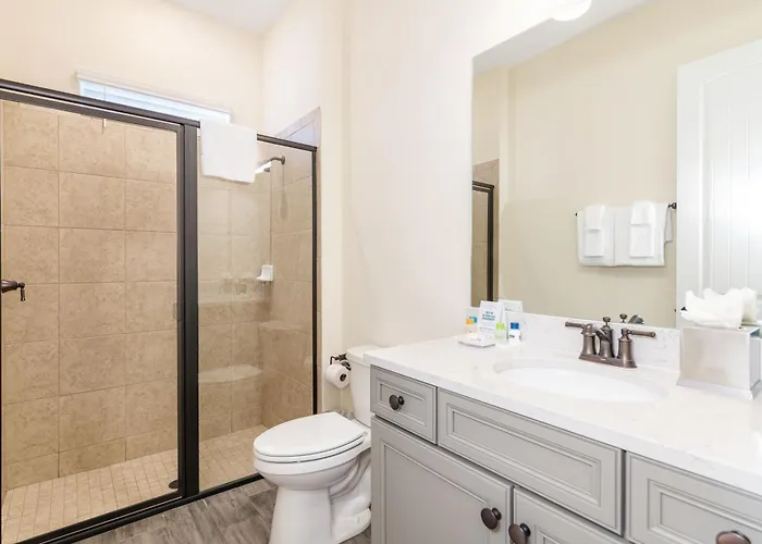 Podrás llegar al aeropuerto Internacional de Orlando en 36 minutos en coche, y hay atracciones naturales como el Parque acuático Disney's Blizzard Beach a 10 minutos en coche. Además, esta casa de vacaciones está a una distancia de 6 km del Complejo deportivo ESPN y a una distancia de 2,1 km del Bulevar Emerald Island.